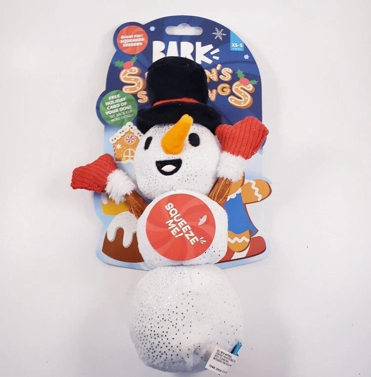Bring holiday cheer to your dog’s playtime with the BARK Christmas Dog Toy Jolly Jacques Frost Snowman. This festive plush snowman is designed to keep pups entertained with engaging textures and a built-in squeaker that delivers satisfying fun with every squeeze.
